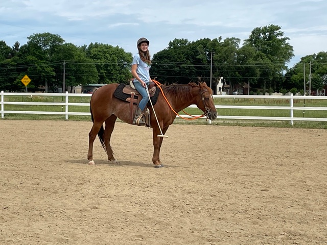 Ima Little Stuck, aka Stuck, is a 2017 QH filly. Stuck just entered the lesson program after summer camp in 2021 and is doing a fantastic job. Because she’s only 4 we limit how many lessons she does a week. Stuck is the first of the next generation of lesson horses coming up and we think she’s going to be a fantastic addition! Stuck is also Allison’s main liberty horse.