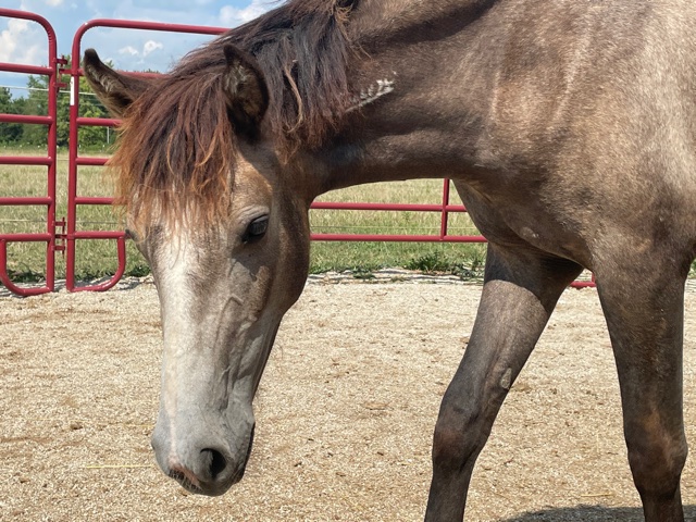 Eowyn is a 2020 BLM mustang filly. She made the journey from California with Naomi this spring. She is a little more wary than Naomi, so she’s been a great mustang to work with as she’s been more challenging, but we’re learning a lot by working with the mustangs! Naomi and Eowyn are Allison’s next personal horses and she looks forward to her journey with them!
